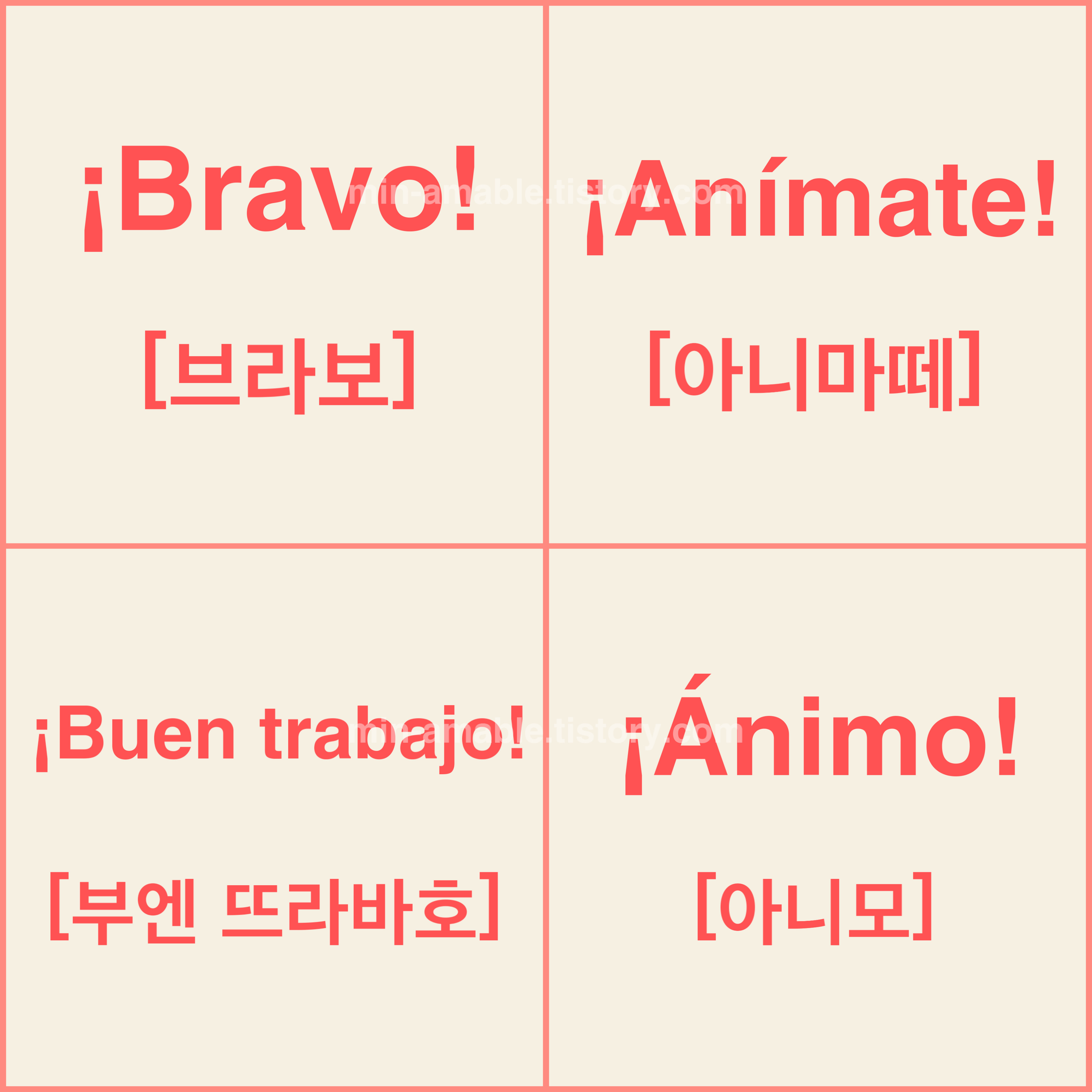 | 격려 | ¡Ánimo! [아니모] |