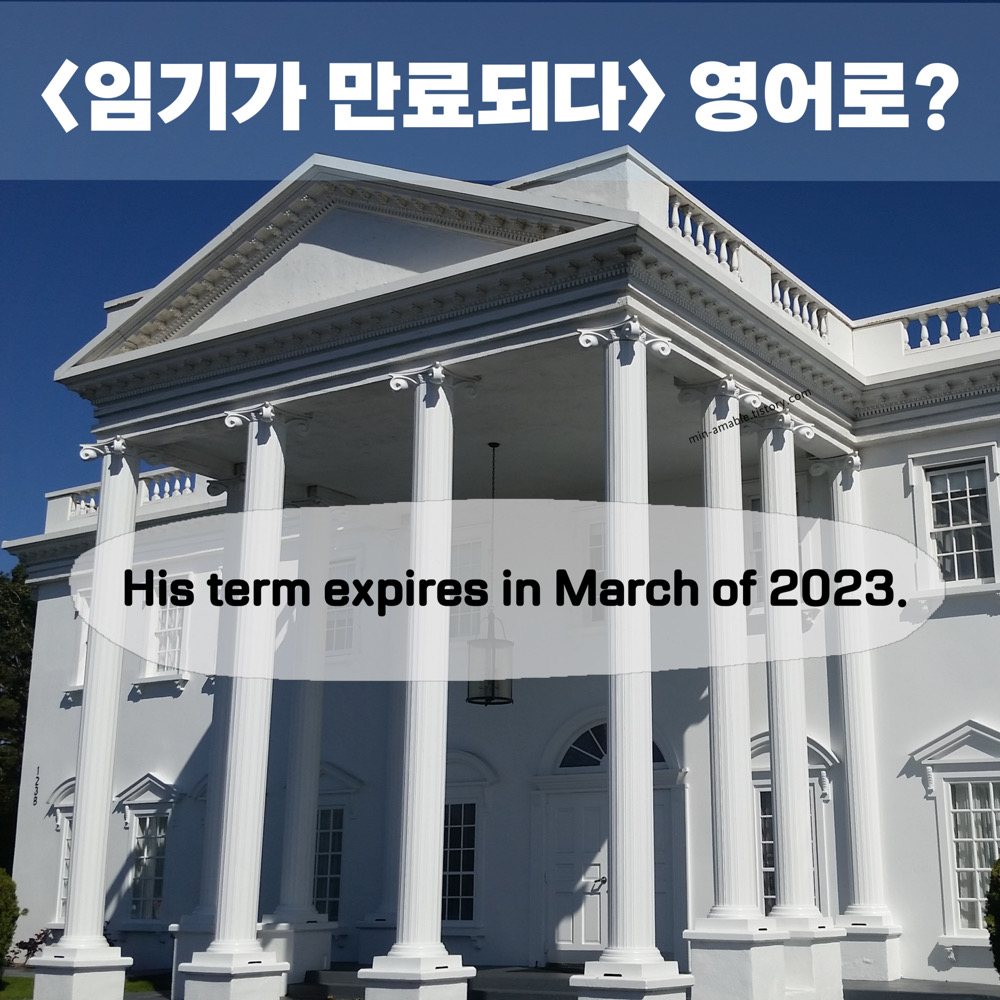 라고 말할 수 있습니다. 임무를 맡아보는 기간인 임기는 'term'이라고 하는데요, <the term expires(=ends) in 월 / 연, the term expires(=ends) on 날짜 >로 자주 쓰입니다.