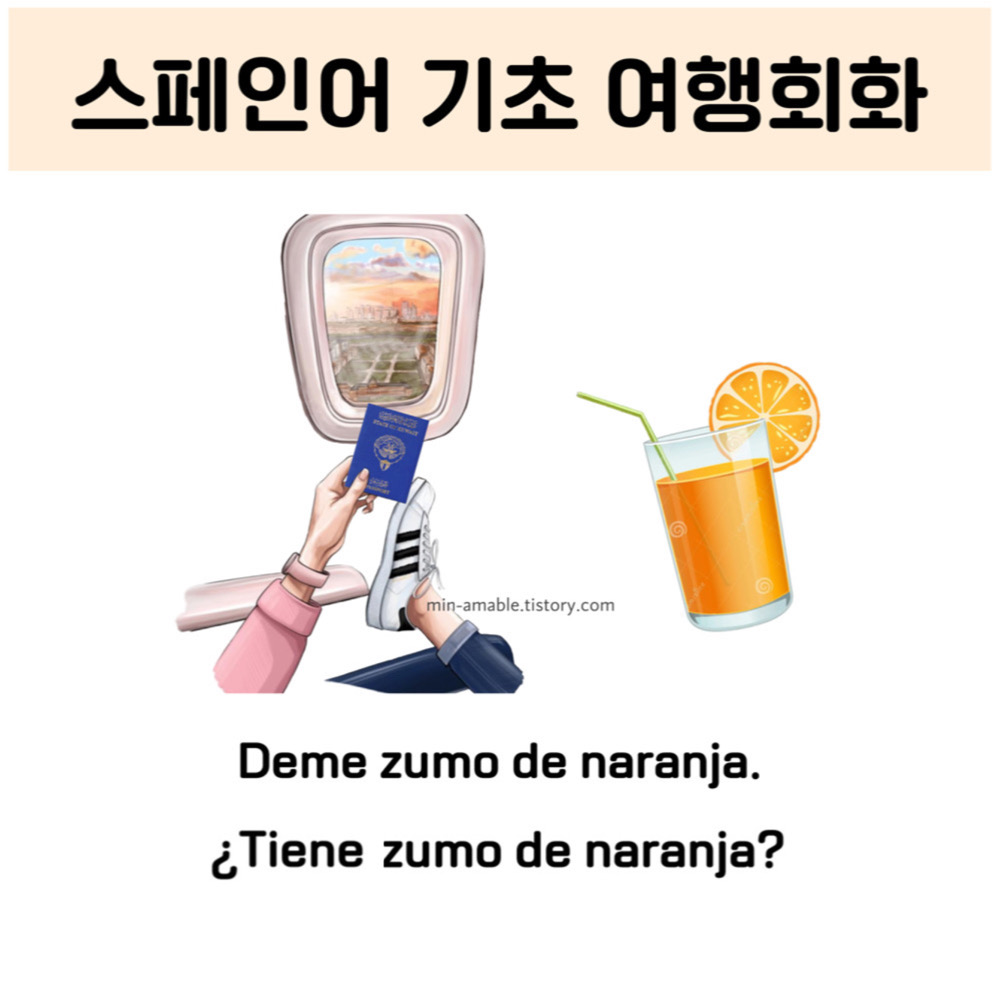 Deme zumo de naranja. - 오렌지 주스 주세요. / ¿Tiene zumo de naranja? - 오렌지 쥬스 있나요?