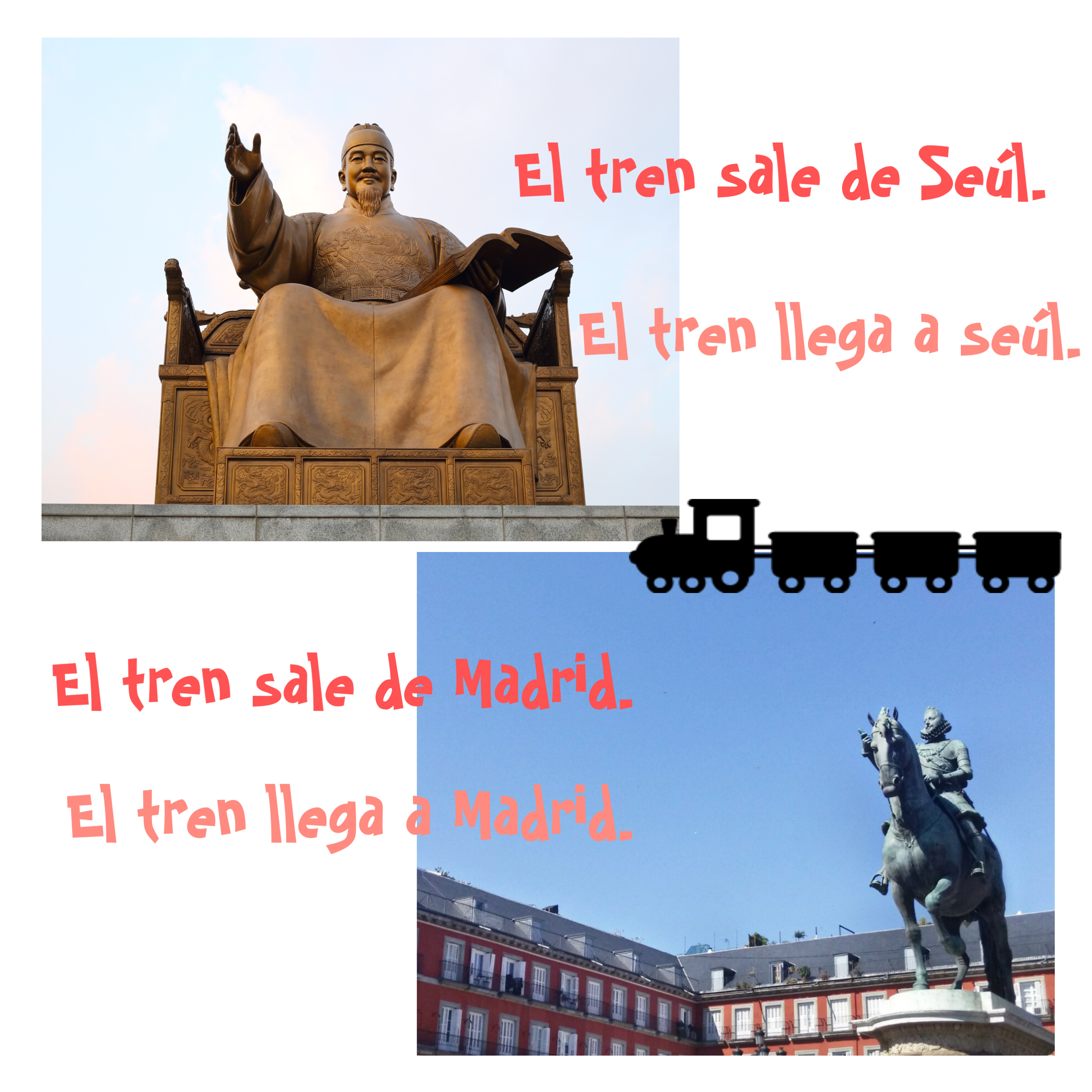 - El tren sale de Madrid. - 기차는 마드리드에서 출발해 (de : ~에서)