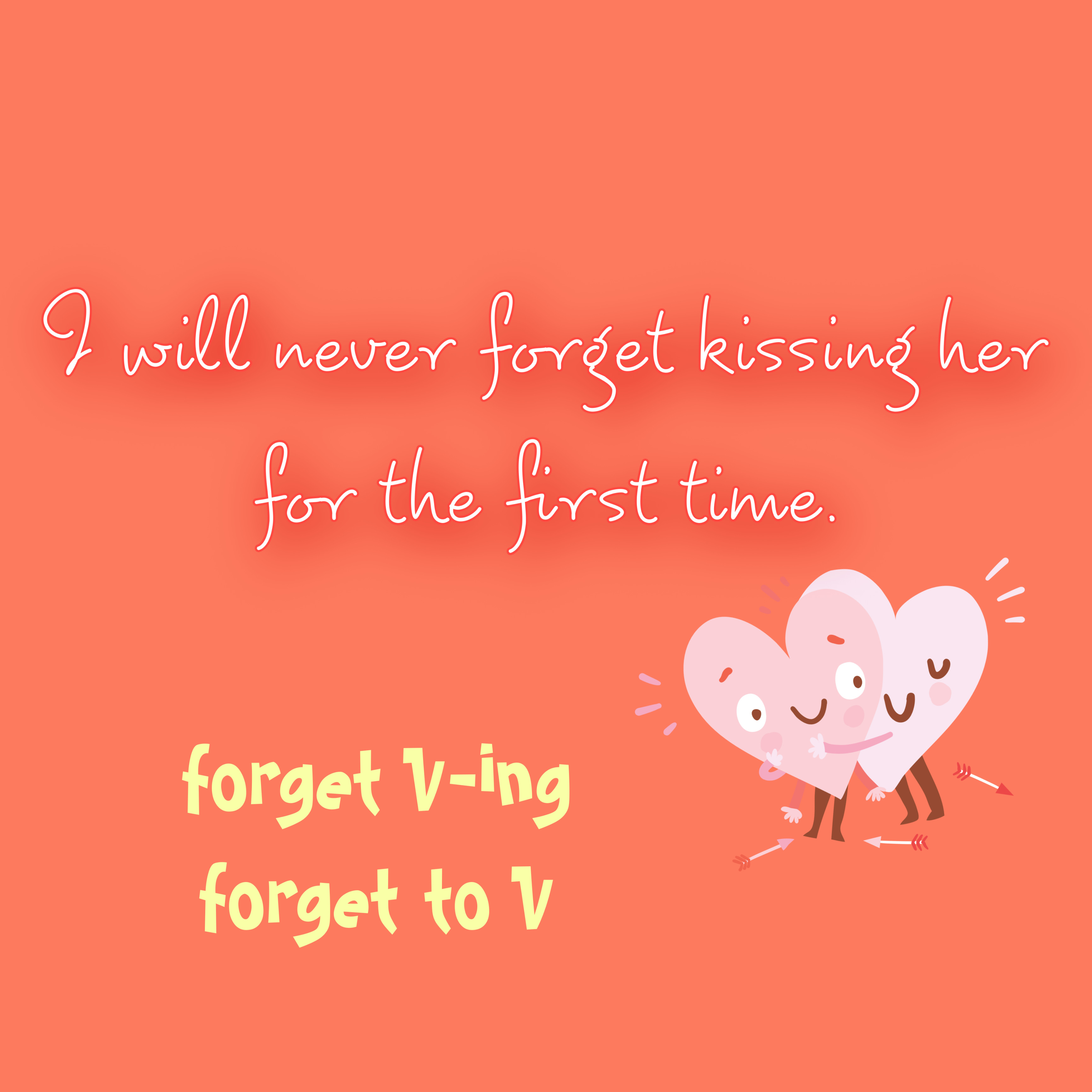 I will never forget kissing her for the first time. - 나는 그녀에게 했던 첫 키스를 절대 잊지 못할 거야.