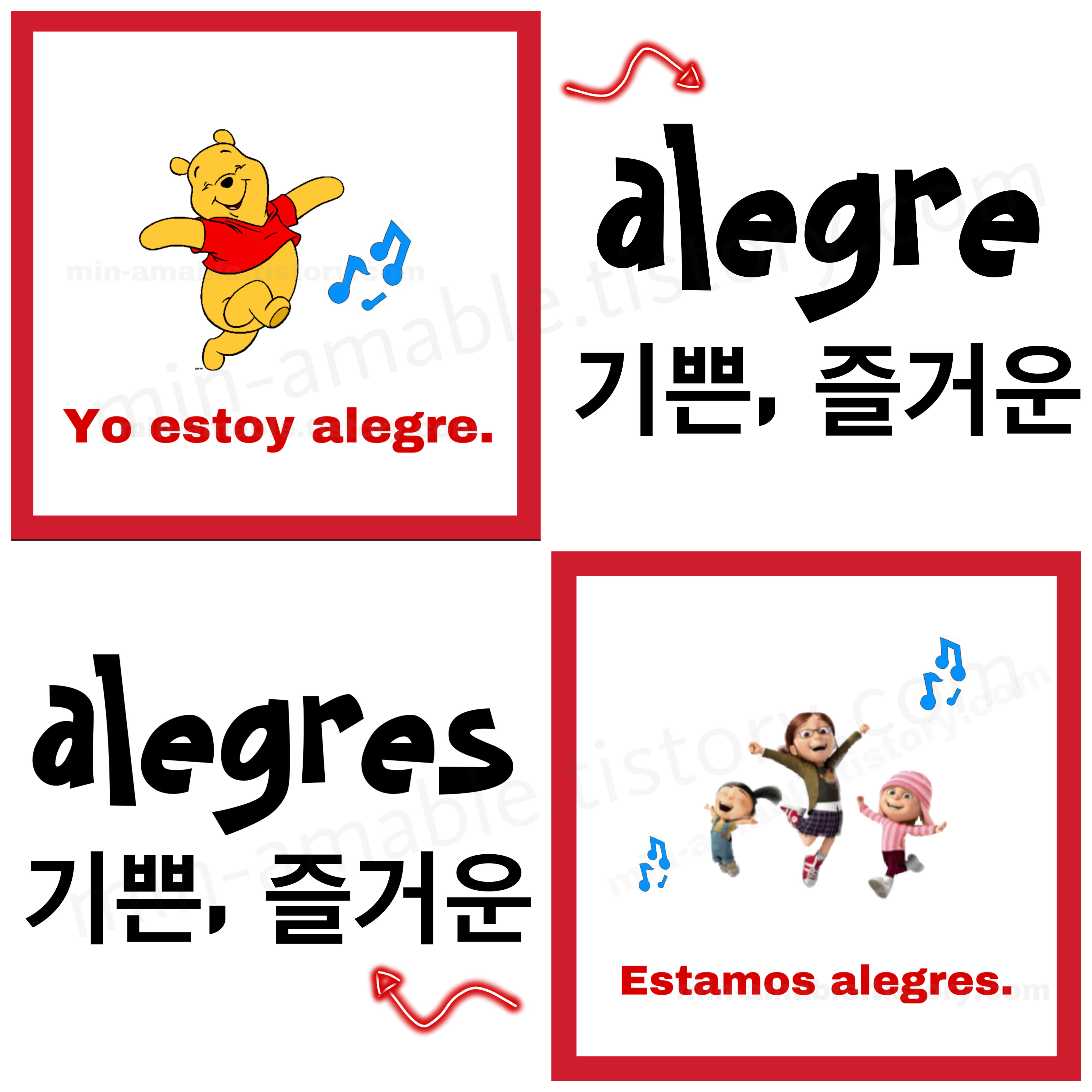 여기서 또 눈치 채신 분들 있을 지도 몰라요. 기쁜, 즐거운 - alegre / alegres 똑같은 뜻, 의미 인데 왜 s가 있고 없나요?