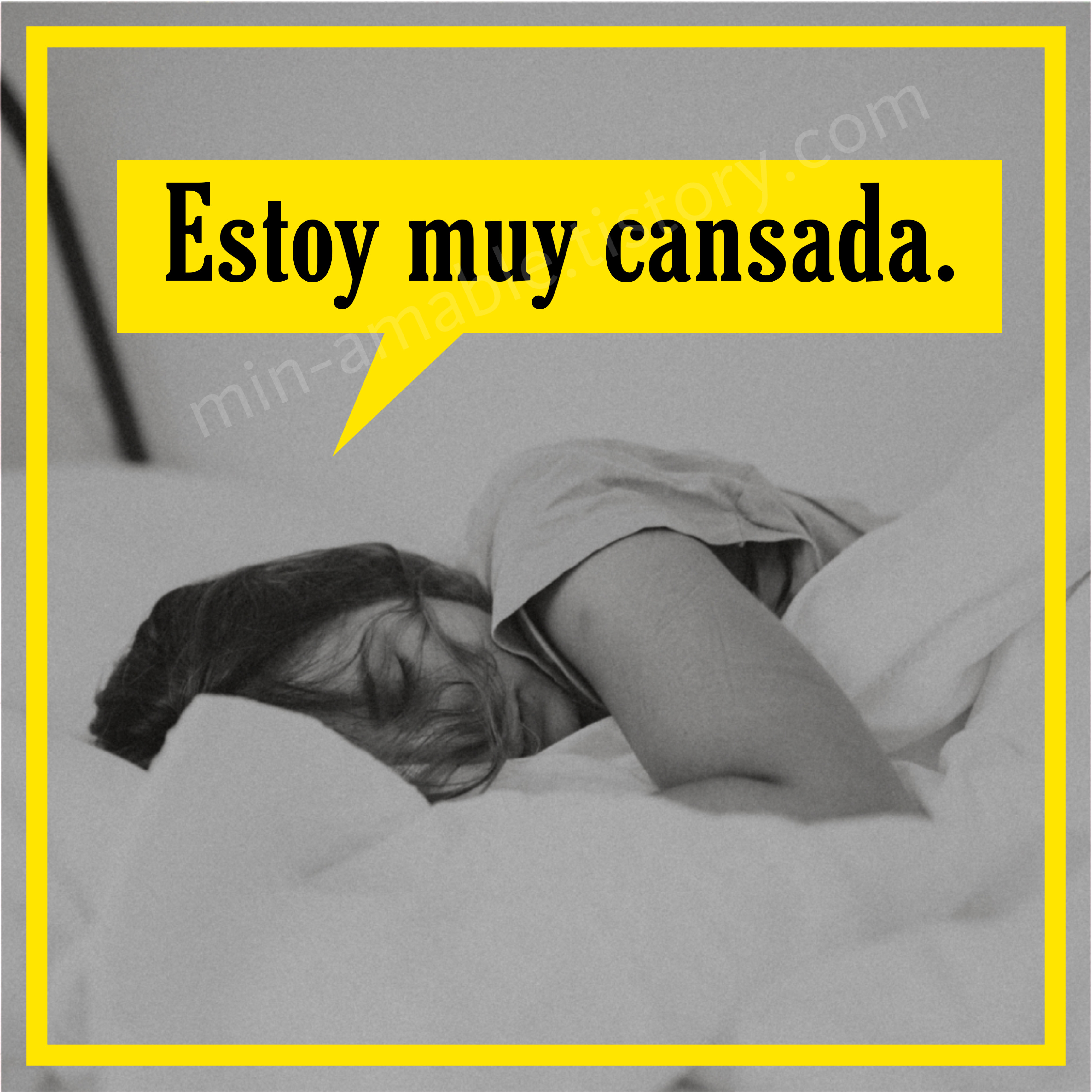 그림에 있는 문장을 살펴봅시다. Estoy muy cansada. - 나 지금 너무 피곤해 라는 의미입니다. 그림 속에 보이는 사람이 여자 인가요? 남자 인가요?