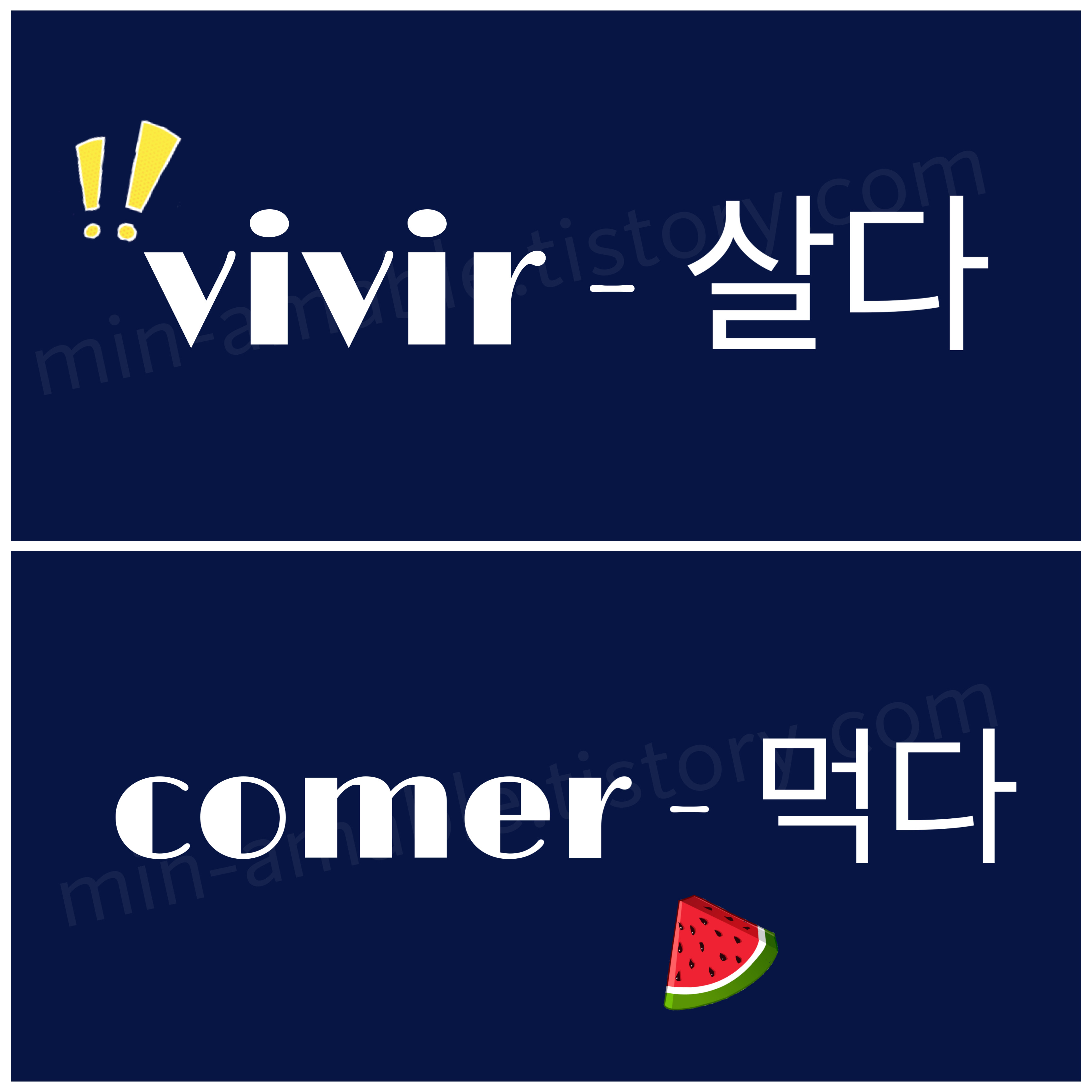 | 1) vivir - 살다 | 2) comer - 먹다 | |