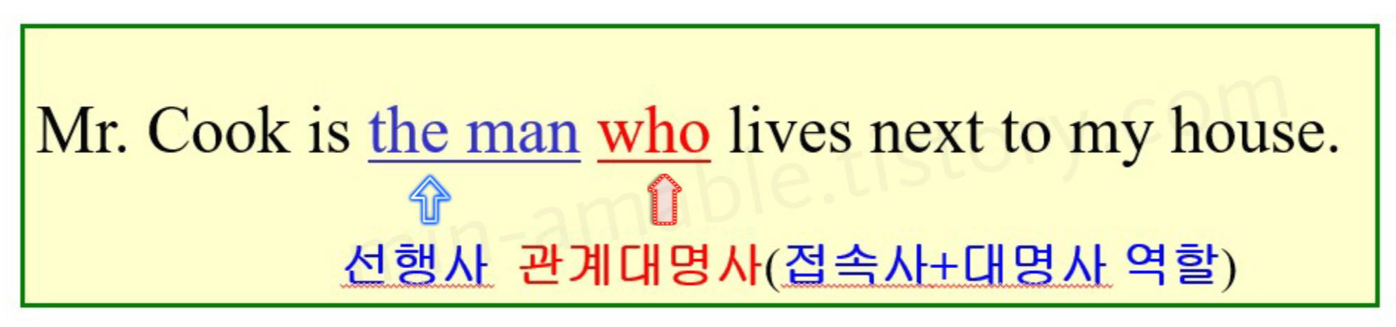 | 주격 관계대명사 who, that, which 역할 차이점 예문 (0) | 2023.12.12 |