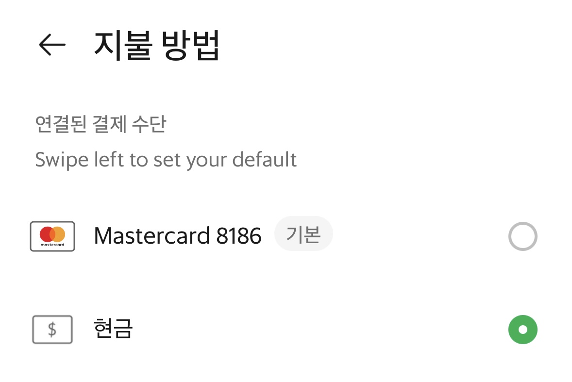 저는 한국에서 그랩에 마스터카드 정보를 등록해 놔서,