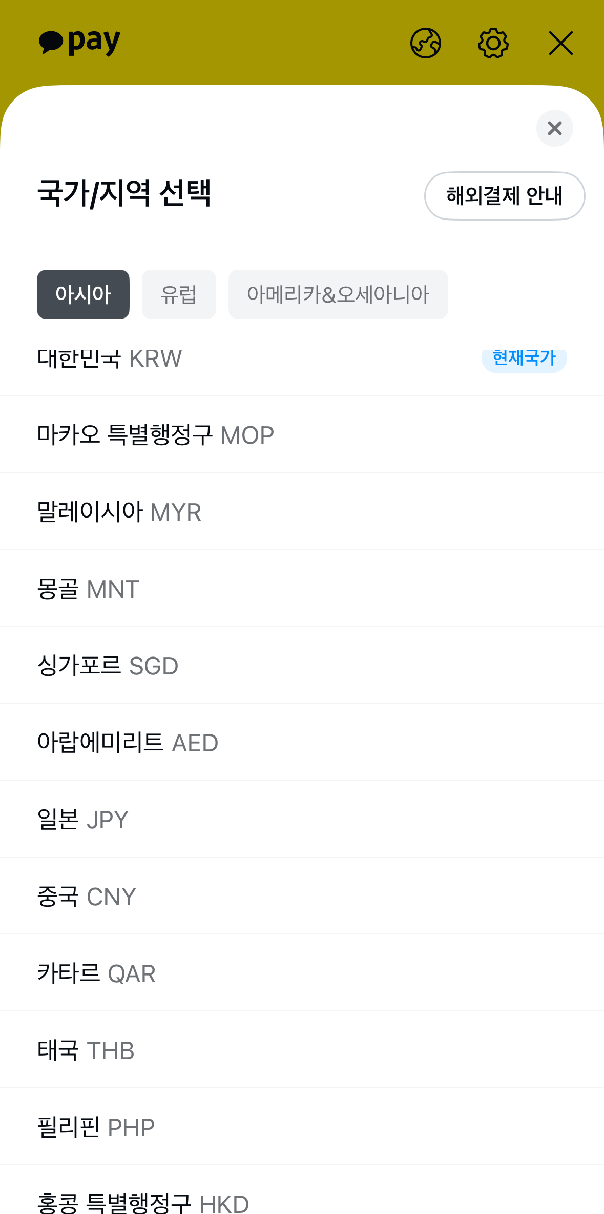 그러면 국가/지역을 선택할 수 있어요.