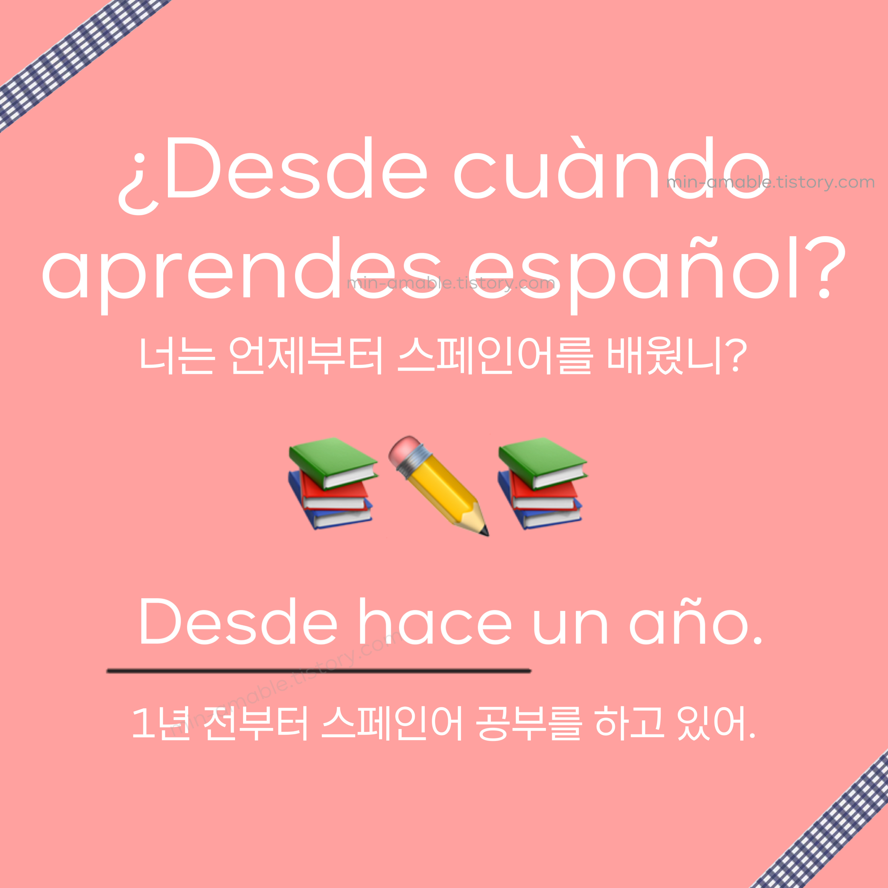 오늘 포스팅에 있는 스페인어 문장들은 일상적인 회화에서도 많이 사용하실 수 있을 거예요. 기간과 시작 시점 표현하는 방법 - 별로 어렵지 않으니 반복해서 눈에 읽히다 보면 금방 익숙해질 거예요.