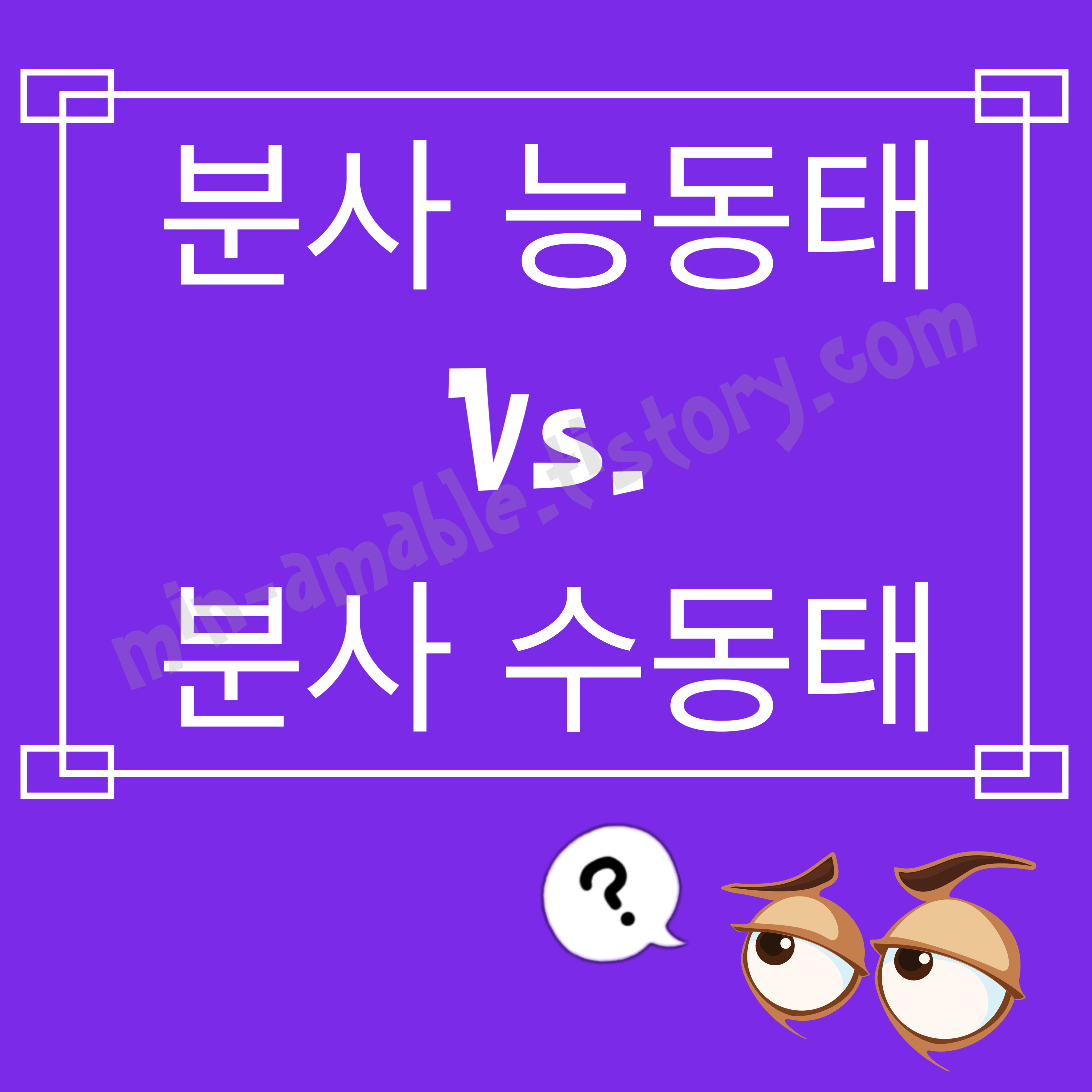 간단하게 능동과 수동에 대해서 말씀드리긴 했지만, 기본적인 능동태와 수동태 개념이 없으면 분사구문의 능동, 수동을 이해하는데 어려울 수 있기 때문에 아래 링크에서 먼저 능동과 수동의 개념을 확실히 이해하시는 걸 추천드립니다.