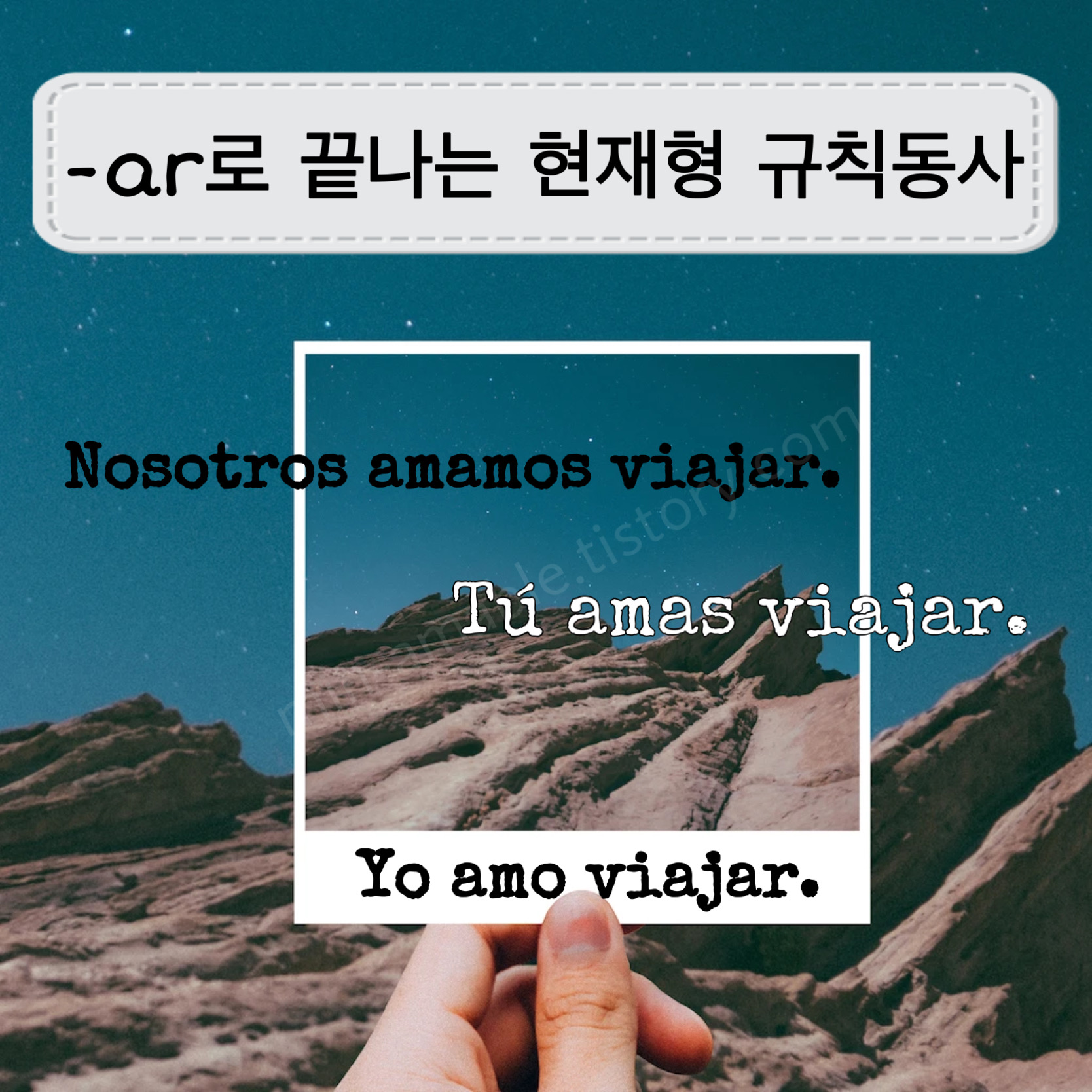 아래의 동사들은 인칭에 따른 6가지 변화 형태를 모두 살펴볼게요. 그리고 포스팅 하단에 -ar로 끝나는 규칙 동사들의 예를 추가로 적어 놓을게요.
