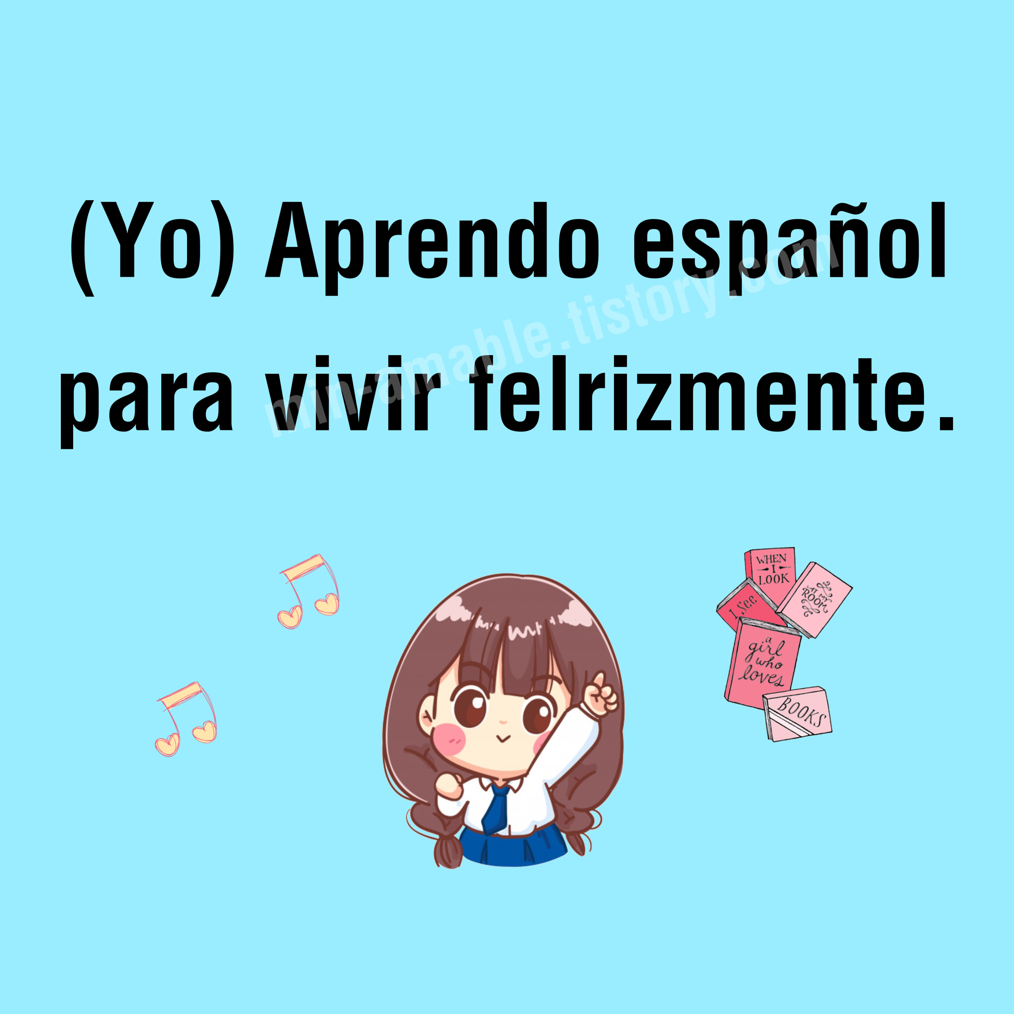 - Yo aprendo español / para vivir felizmente. [요 아쁘렌도 에스빠뇰 빠라 비비르 펠리쓰멘떼]